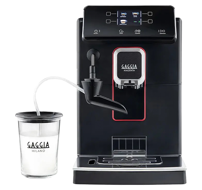• The CAPPinCUP is the new one-touch cappuccino system by Gaggia. With a click, it takes milk from a container (or the external carafe), froths and slides it automatically into a cup. This solution avoids splashes, and there is no need to move the cup from under the coffee spouts.