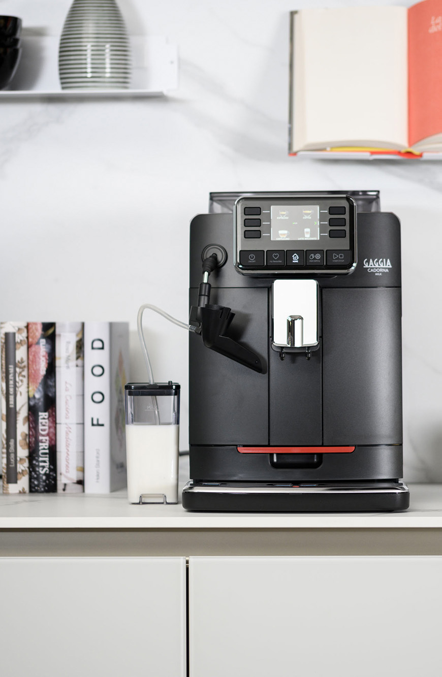 • The CAPPinCUP is the new one-touch cappuccino system by Gaggia. With a click, it takes milk from a container (or the external carafe), froths and slides it automatically into a cup. This solution avoids splashes, and there is no need to move the cup from under the coffee spouts.