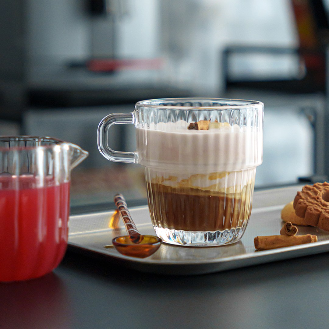 Siamo partiti da una suggestione: un sogno per i nostalgici del tempo più fresco, dei profumi autunnali e dei cieli striati di colore. Qui, l’aroma del caffè si sposa con il calore speziato della cannella e la vibrante dolcezza dell’arancia rossa. Il risultato è un iced coffee morbido e aromatico, che gioca con la cremosità della panna e la freschezza degli agrumi.